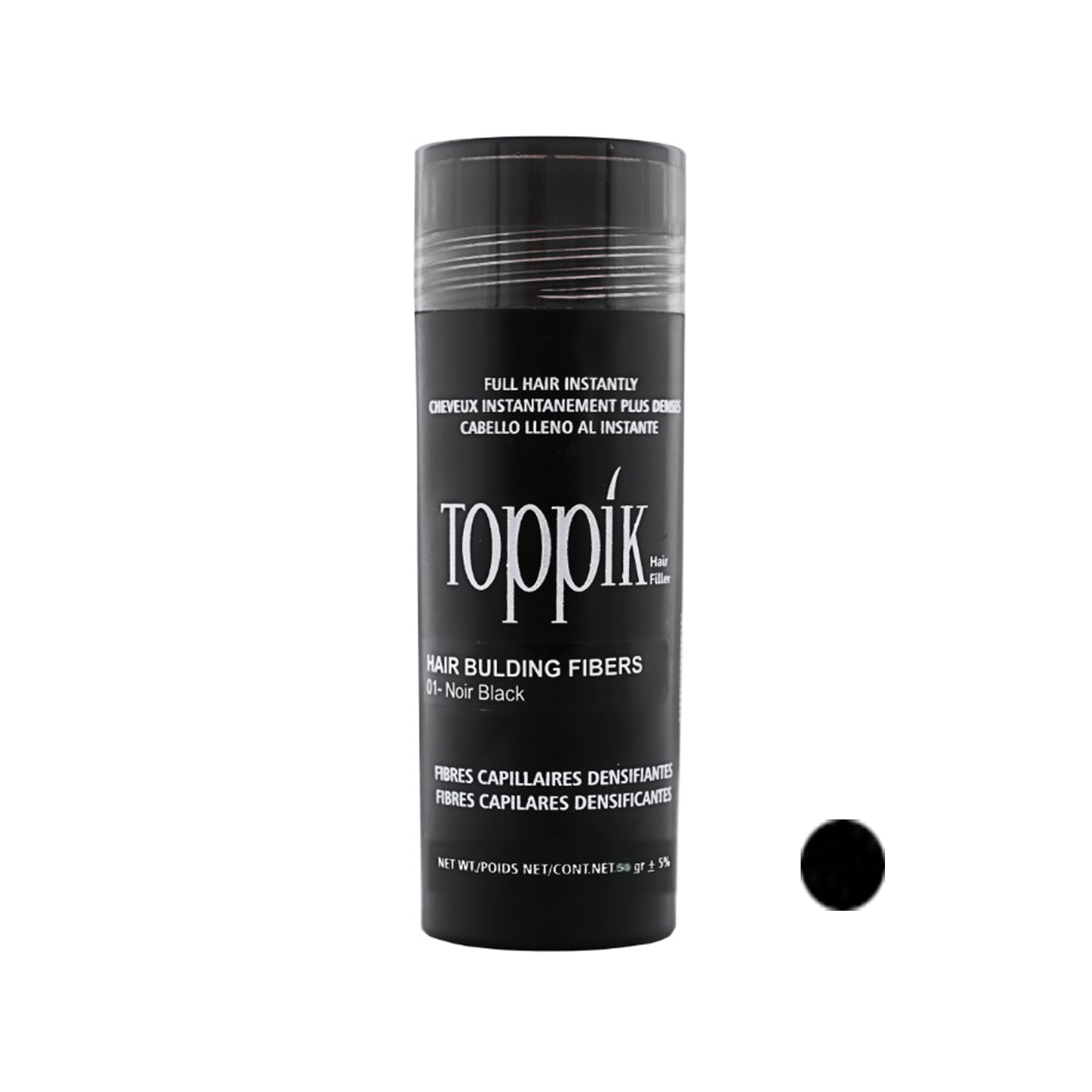 پودر پرپشت کننده مو تاپیک هیر فیلر کد 01 وزن 50 گرم رنگ مشکی تیره