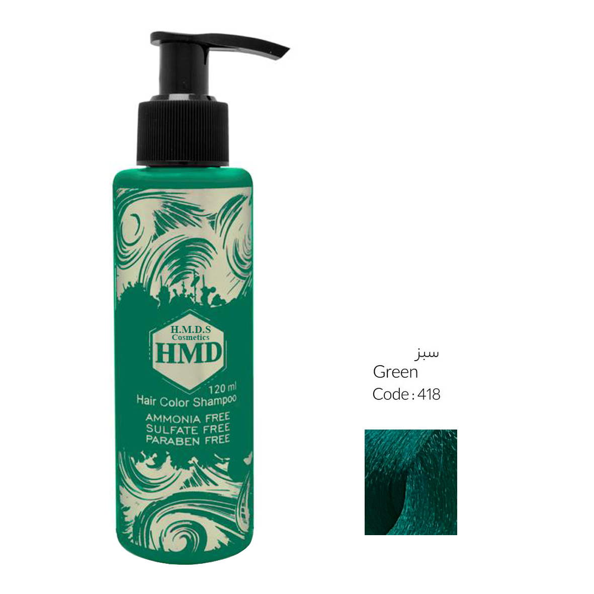شامپو رنگ مو اچ ام دی اس کازمتیکس شماره 418 حجم 120 میلی لیتر رنگ سبز